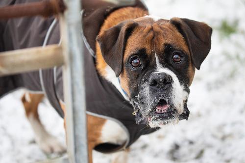 - Dogs with short coats — animals with shorter coats may be more likely to feel the effects of cold weather. Keep them cosy with a coat for walks, and a snuggly blanket in the home.